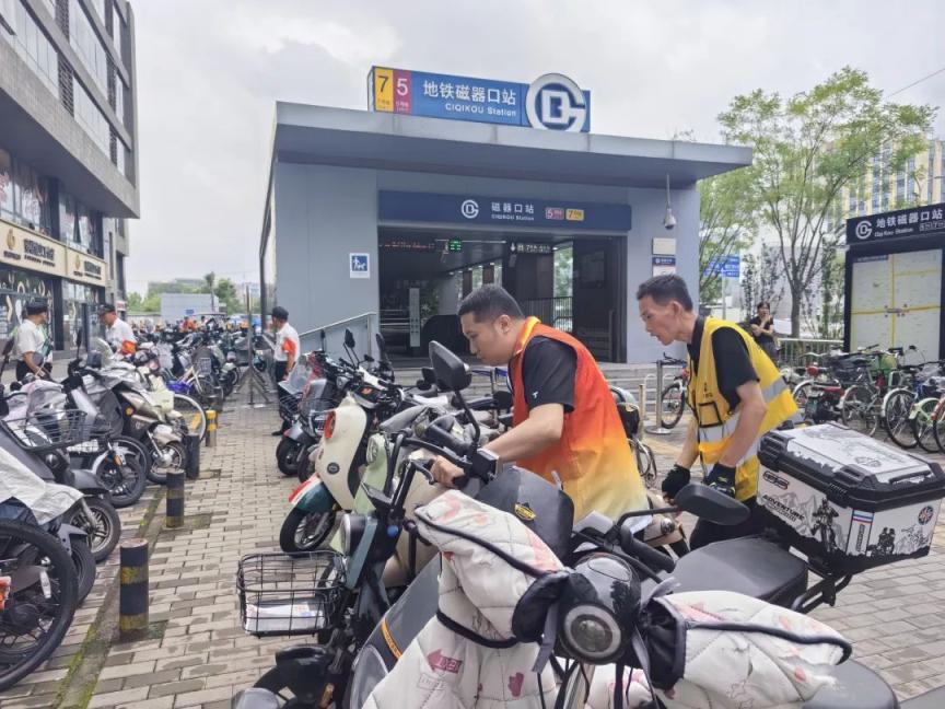 轨说念交通站点相近时常是自行车、电动自行车乱停放的高发区域,而地铁7号线磁器口站G口又因毗邻商务楼宇,隔壁有多家餐饮门店、好意思食广场,成为外卖电动车扎堆区域,用餐岑岭期时常酿成通行堵塞和安全隐患。针对此问题,体育馆路街说念积极阐扬党建引颈、时髦共建作用,组建“底商处分志愿者管事队”。